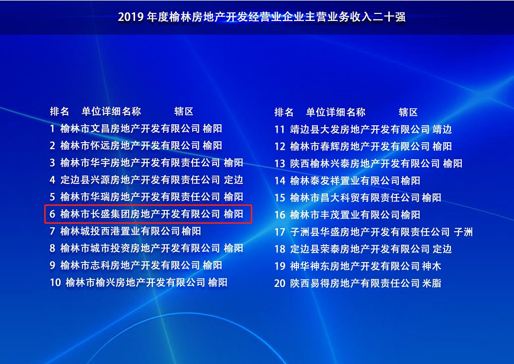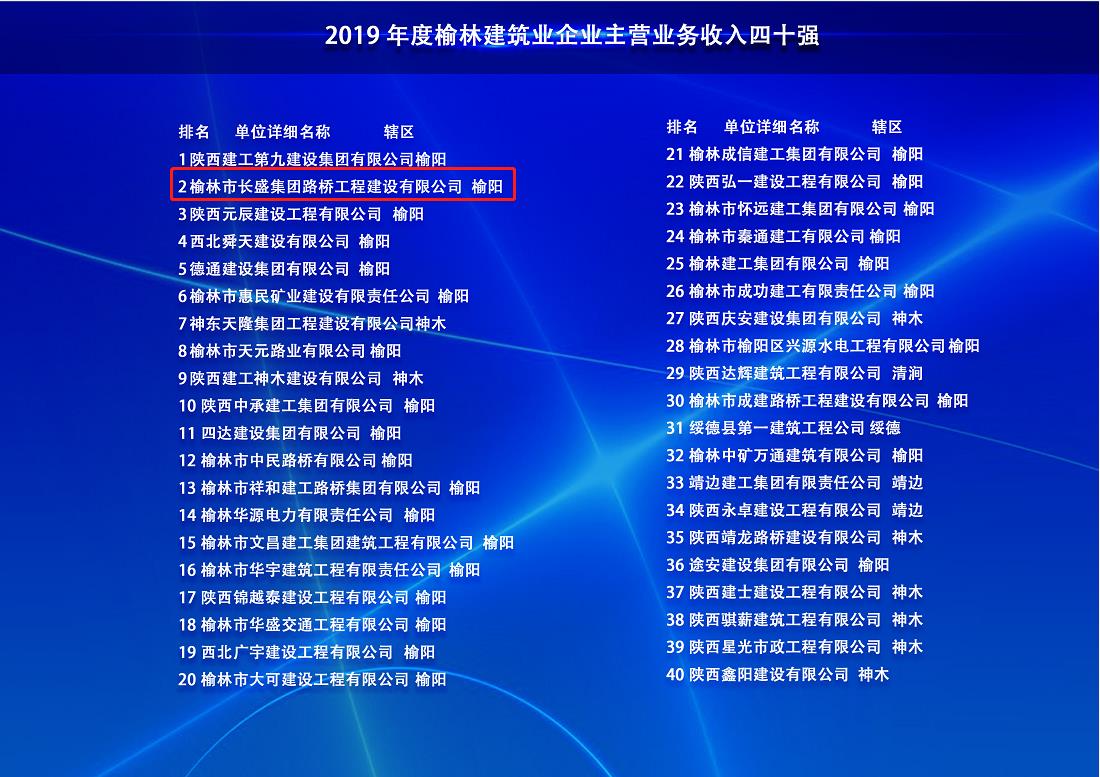 长盛路桥公司入榜榆林市“建筑企业主营业务收入四十强”和“民营企业主营业务收入百强”