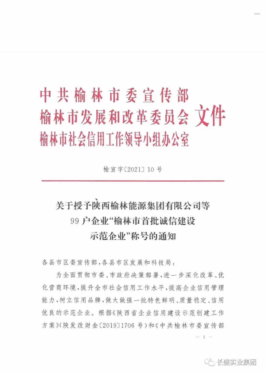 根据《陕西省企业信用建设示范创建工作方案》(陕发改财金〔2019〕1706号)和《中共榆林市委宣传部 榆林市发展和改革委员会关于开展榆林市首批诚信建设示范企业评选活动的通知》(榆宣发〔2020〕23号),中共榆林市委宣传部、榆林市发展和改革委员会、榆林市社会信用工作领导小组办公室组织开展了“榆林市首批诚信建设示范企业”评选工作,经各县市区政府,市工信局、市市场监管局、市生态环境局、市应急局等行业主管部门初步审核,同时向市中级法院、公安局、税务局等相关部门征求意见,专家评审委员会评审,并通过榆林市信用协会工作小组严格评审和实地考察验收确定。经市政府研究同意,拟授予陕西榆林能源集团有限公司等99户企业“榆林市首批诚信建设示范企业”的称号。