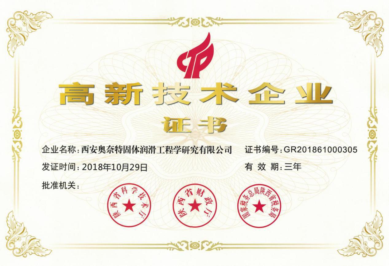 高新技术企业证书
