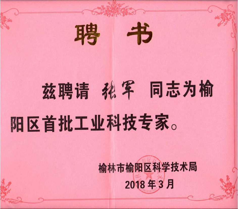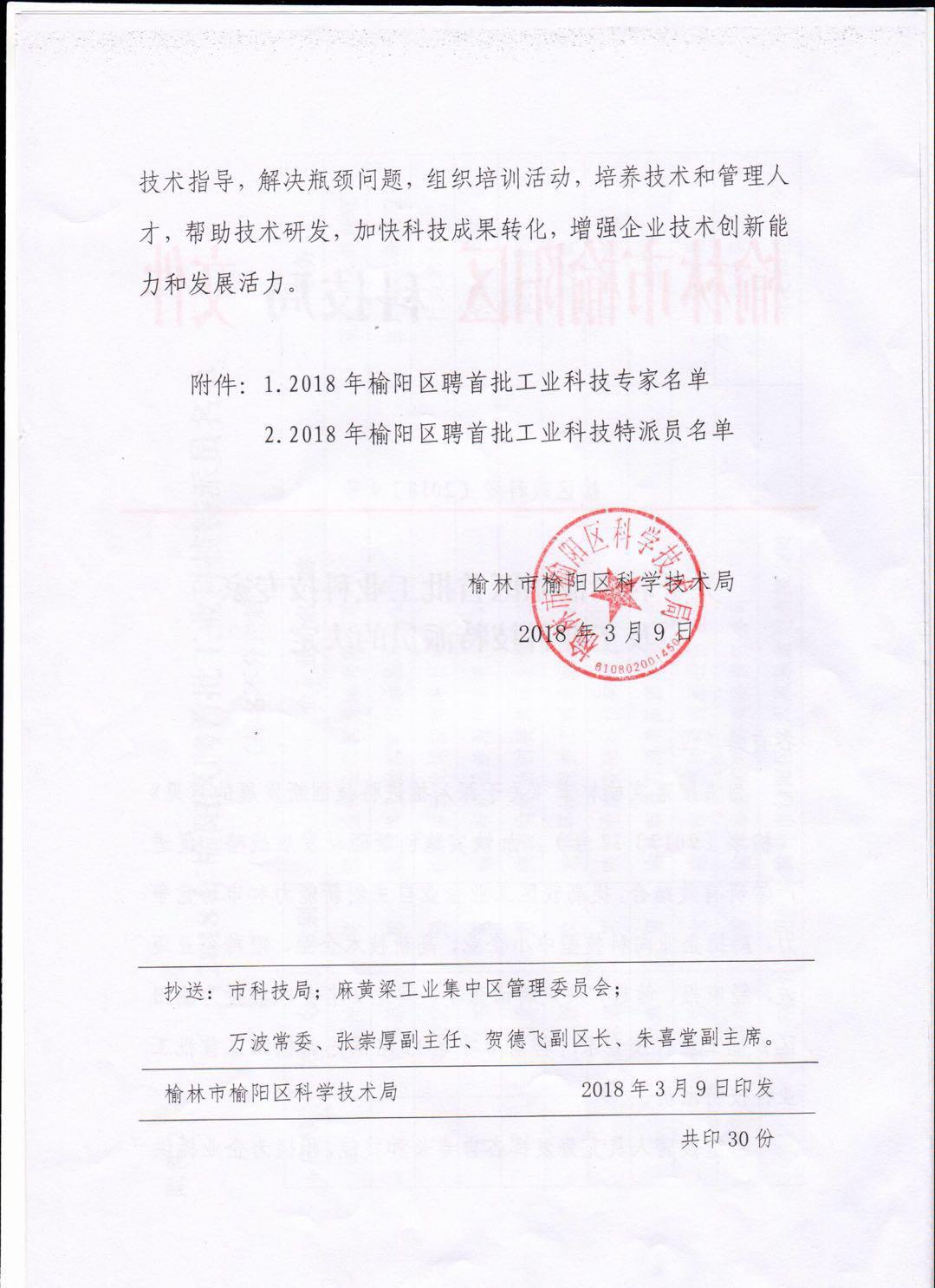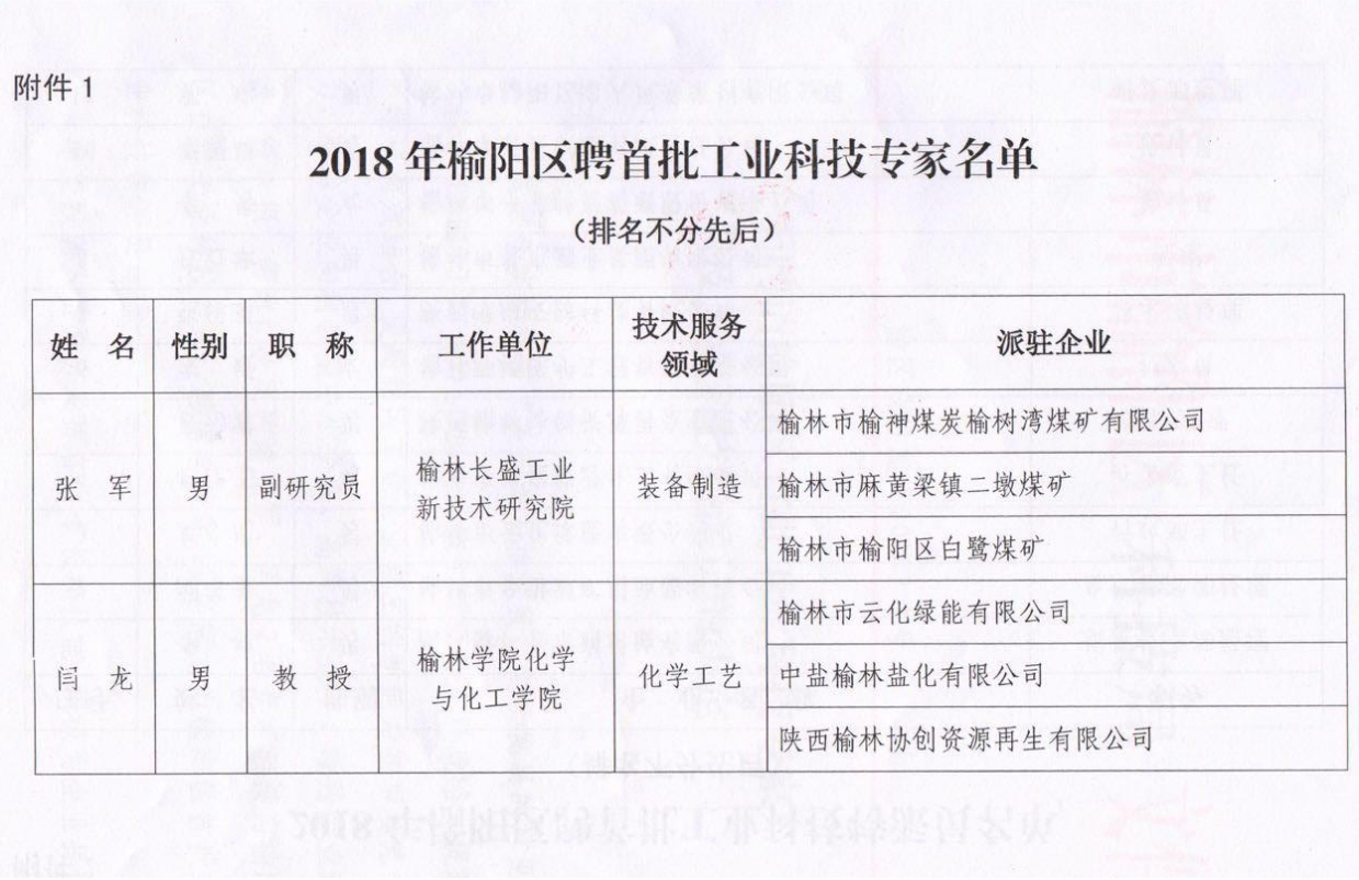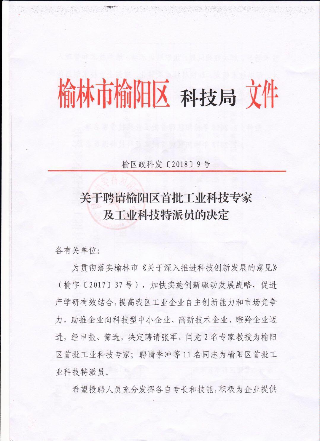 关于聘请榆阳区首批工业科技专家及工业科技特派员
