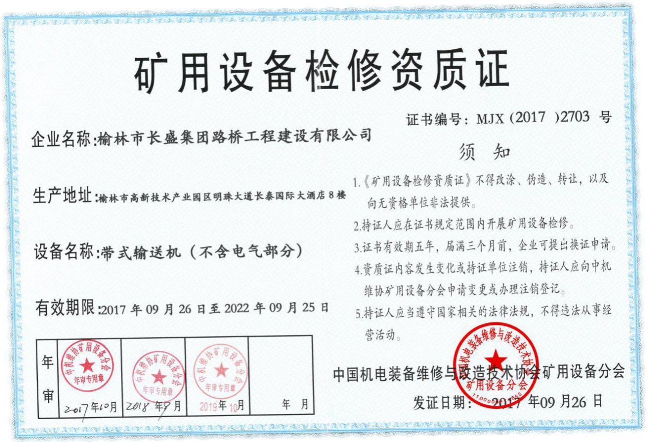 矿用设备检修资质