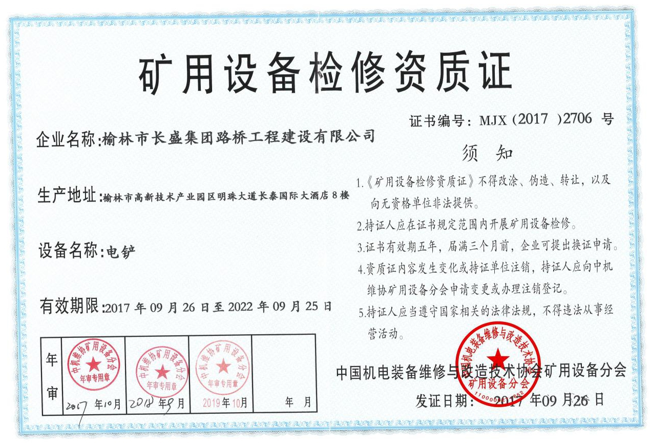 矿用设备检修资质