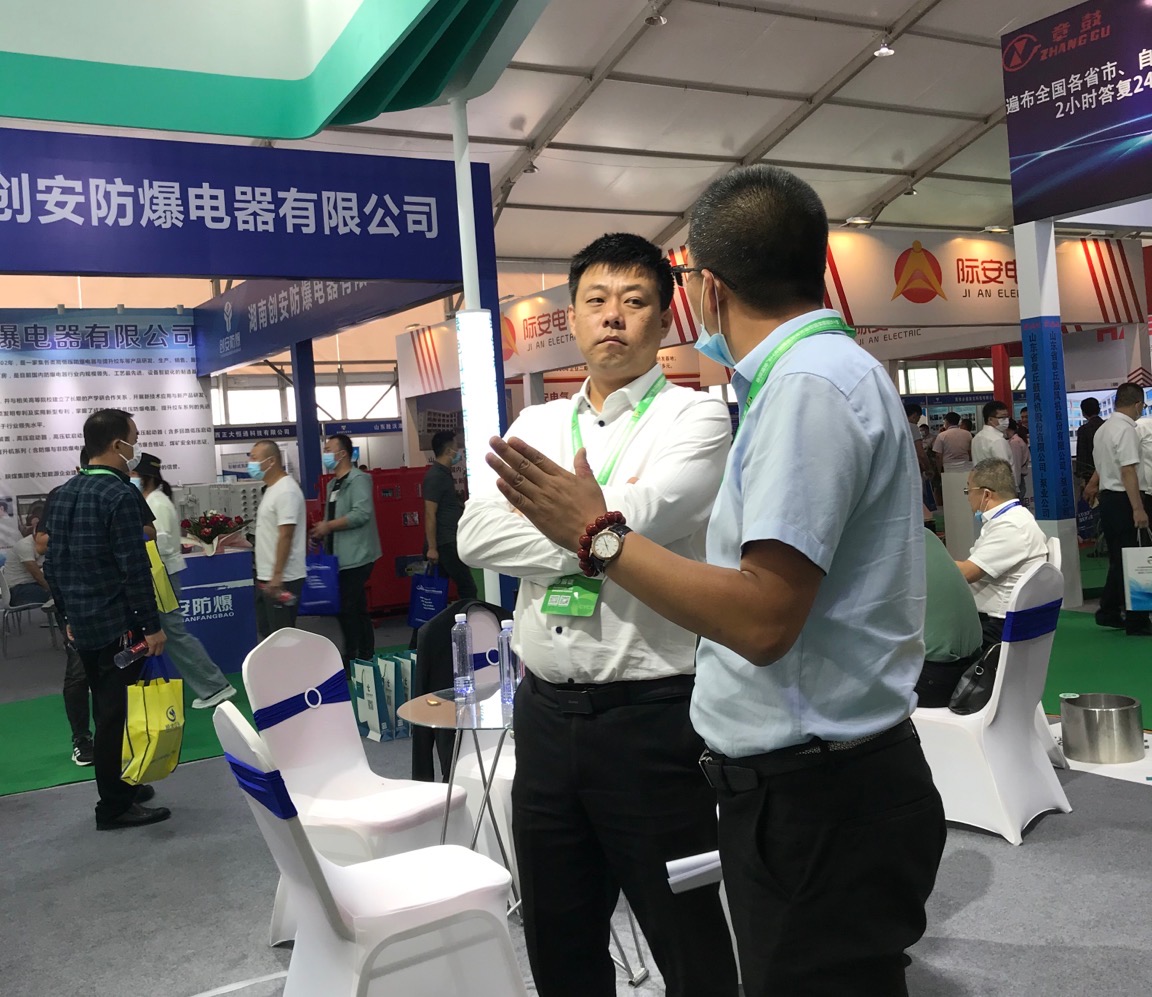 2020榆林煤博会云泰科技经理张炯华与其他企业进行技术交流