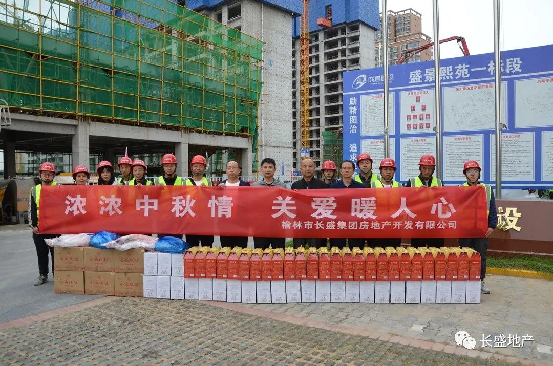9月20日上午,在中秋佳节来临之际,榆林市英国上市公司官网365房地产开发有限公司总经理徐辽飞带队来到盛景熙苑、盛景馨苑、盛景博苑在建项目现场看望一线员工,将月饼、水果等慰问品送到他们手中。公司副总经理刘世斌、总工程师曹光军、总经理助理杨斌等一行参加此次慰问活动。