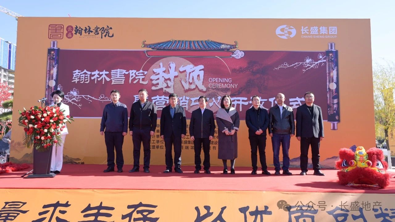 随后,徐永飞与徐辽飞共同为瑞狮点睛,伴随着锣鼓喧天,醒狮欢舞,通过惟妙惟肖的表演,庆贺翰林書院项目封顶大吉!