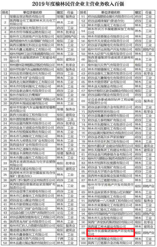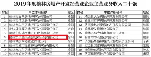 长盛地产公司入榜榆林市“房地产企业主营业务收入二十强”和“民营企业主营业务收入百强”