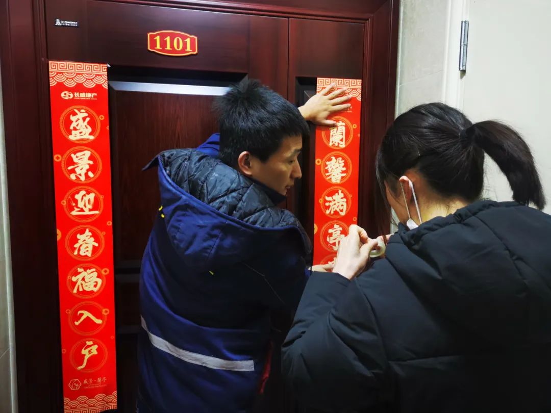 俗话说,无联不成春,为了让小区业主未入住的"新"房,也增添上浓浓的新春气息。盛景蘭亭物业服务中心客服管家,主动联系未装修业户帮忙贴春联,希望通过贴春联活动,弥补在外地不能回家过春节的遗憾。