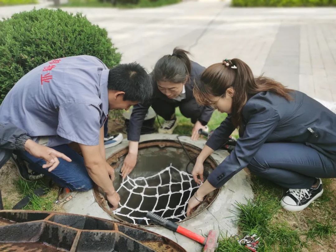 守护脚底安全|万邦物业盛景蘭亭对园区内各类管道井口加装防坠网
