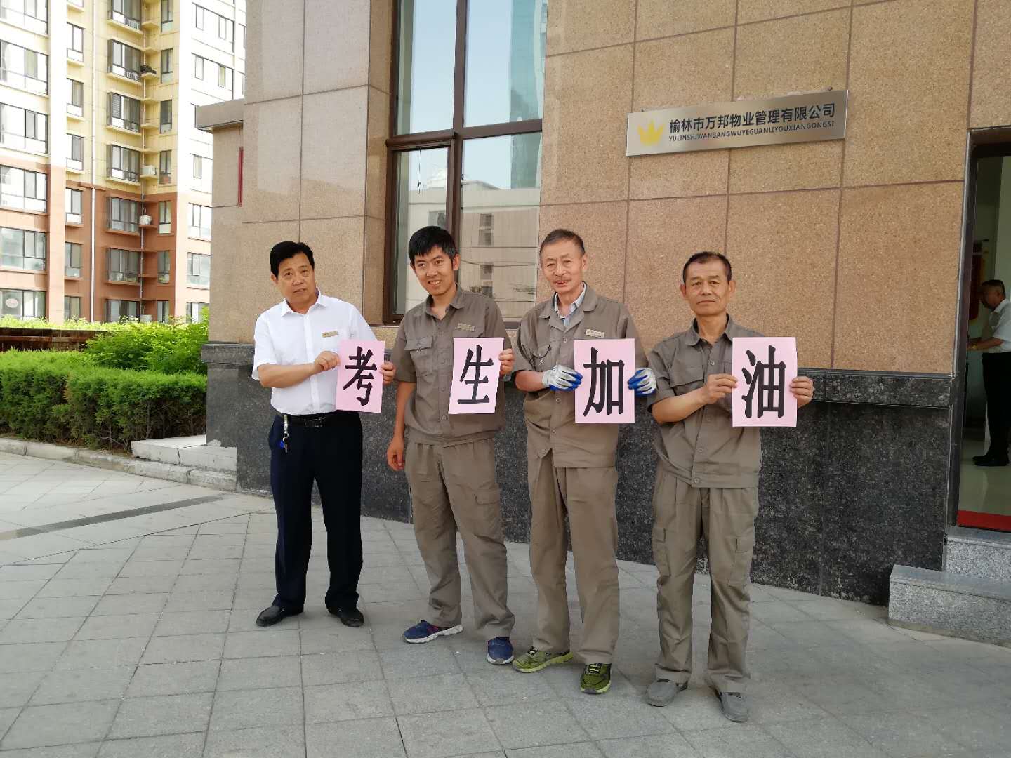 2018年6月中高考月,万邦物业组织了绿色护考活动,全体工作人员预祝各位莘莘学子高考顺利,金榜题名。