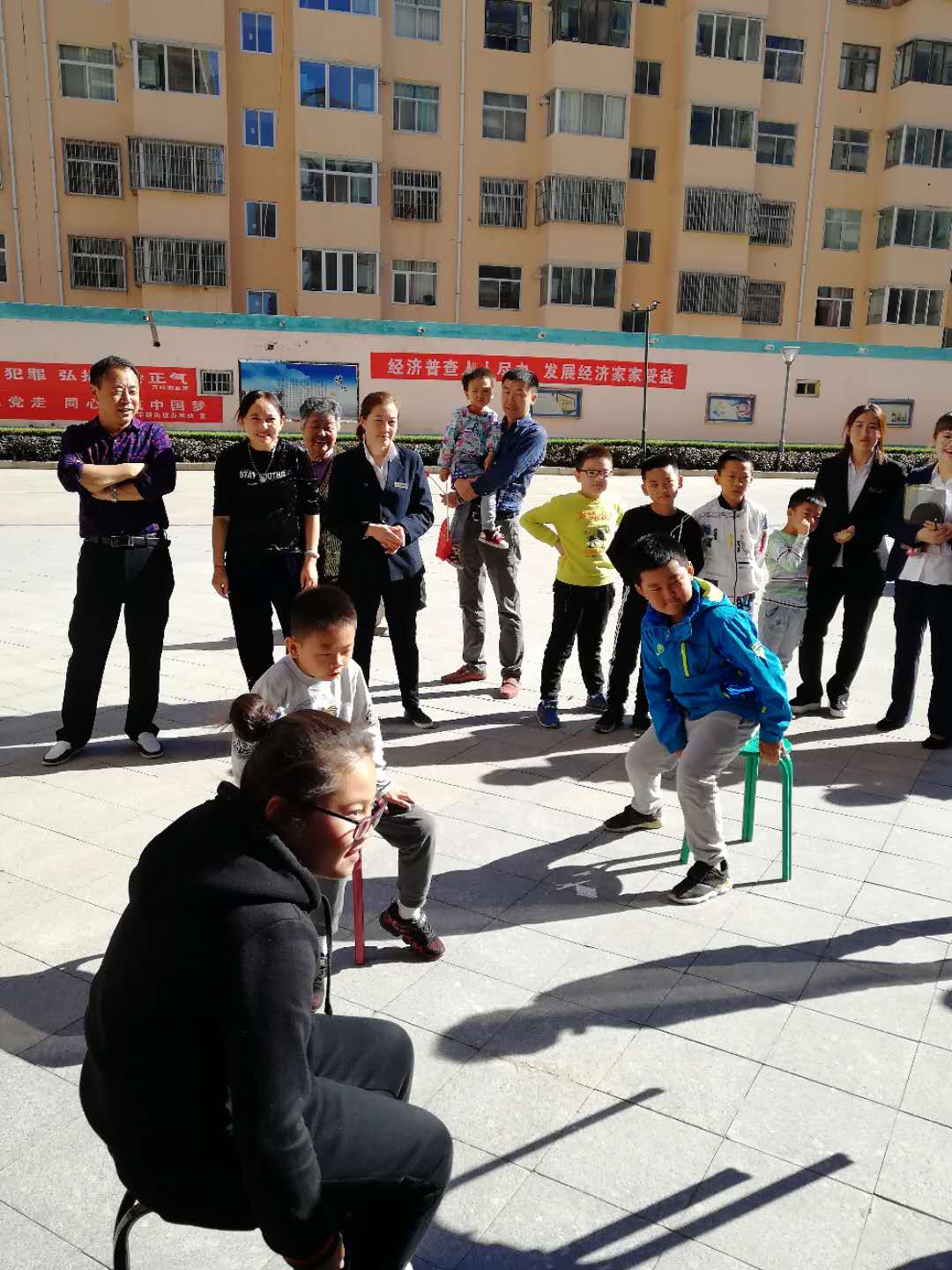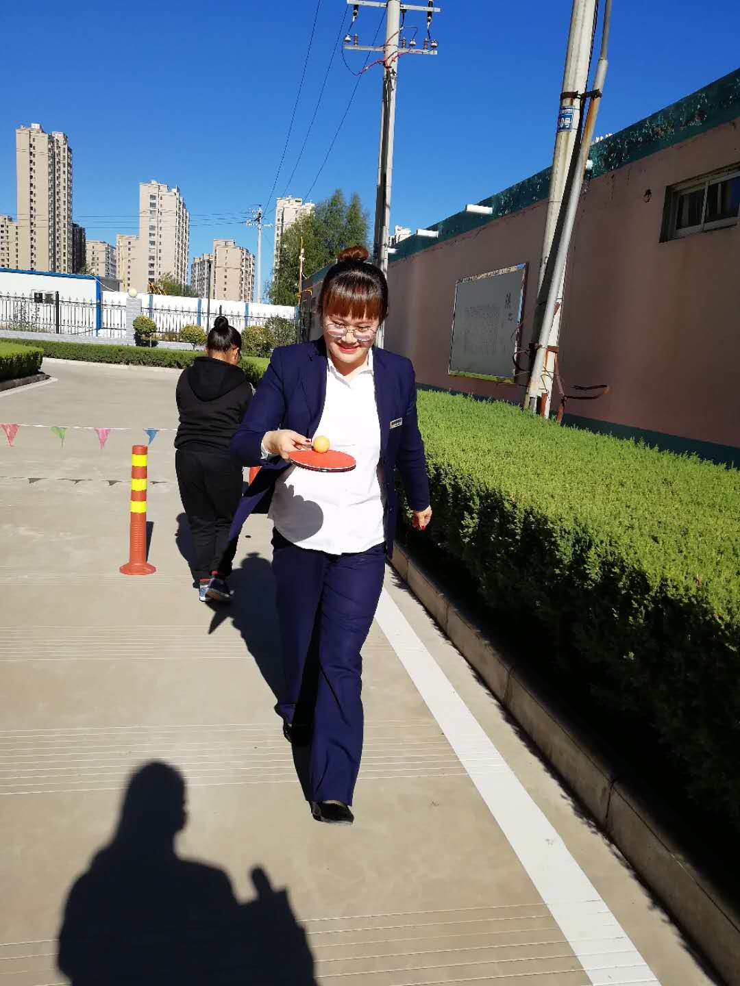 以家庭为单位,一组家庭参与一次,三人一组。三人轮流带球行走并完成传递,直至三人传递完毕,若中途球掉落须从起点重新开始,用时最短者为第一名,依次类推。