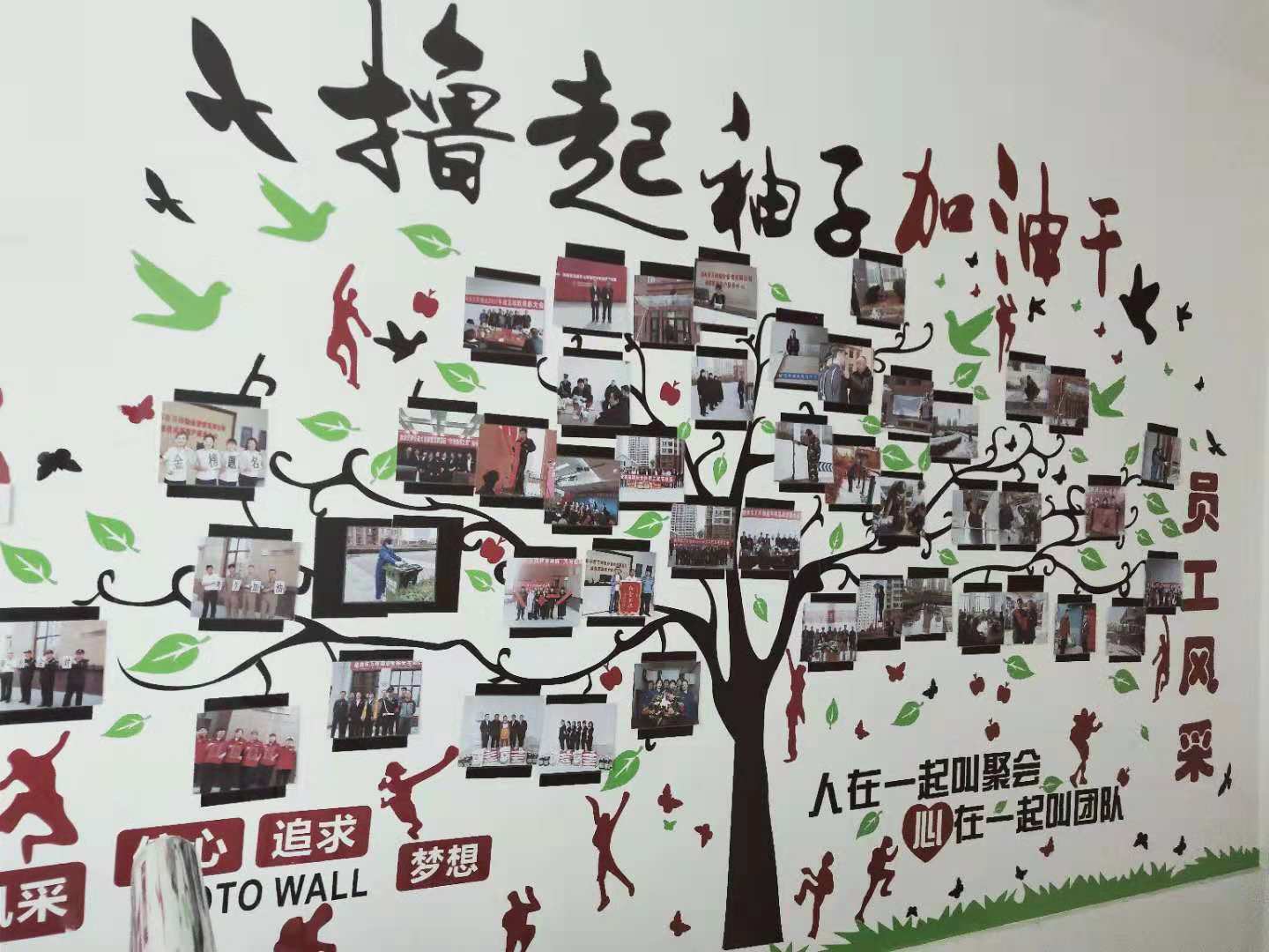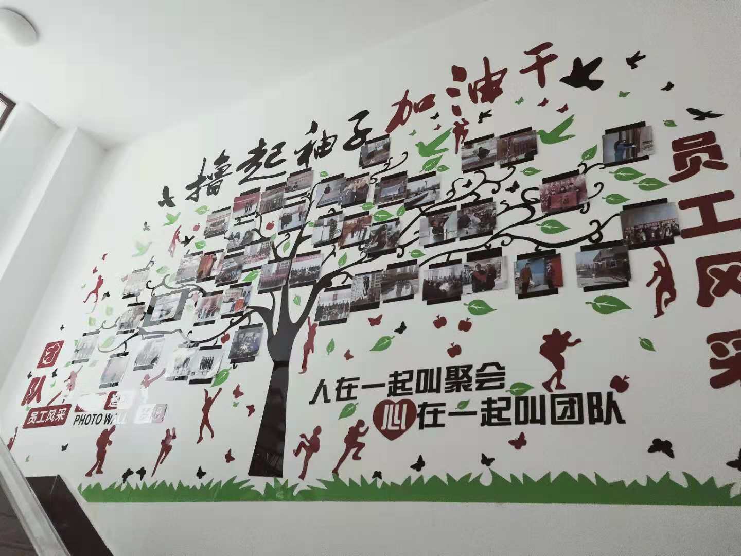 为加强公司企业文化管理,培育良好的企业文化氛围,促进企业文化建设工作健康有序发展, 2018年9月,我们选用亚克力材料的墙贴“成功的阶梯”,激励员工激发潜能,积极向上; 10月建立起照片墙,把我们的团队、员工风采照片展现在这面有限的墙上。 |