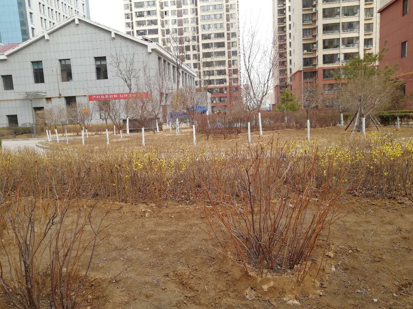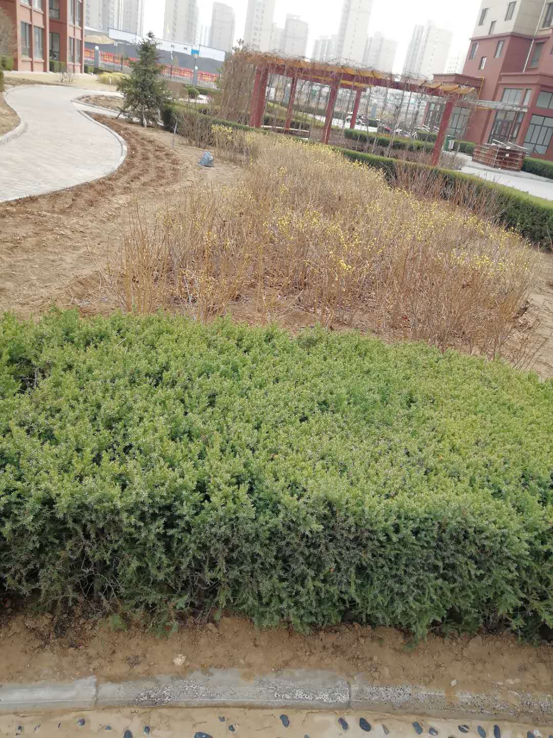 阳春三月,万物复苏,绿化工作在春季的养护工作是否到位,对全年的绿化工作来说都是至关重要的。我公司所服务的盛景家苑小区近期对园区内的绿化苗木加强日常养护,抓住早春修剪的有利时机,对枯枝、病虫枝、过密枝进行科学修剪,合理整形,全面提升绿化景观效果。对部分已解冻的土地进行灌溉,促进树木、草坪发芽,返青。同时,投入人力、物力提前做好苗木采买工作,对裸露土地进行补植补栽。