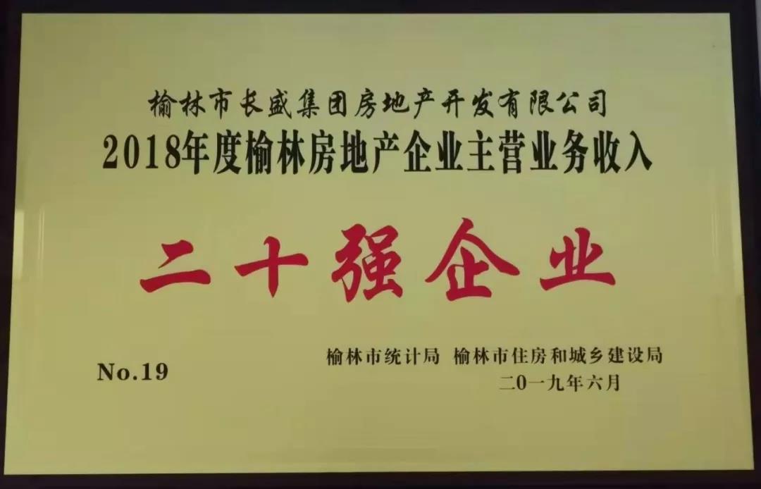 “榆林市英国上市公司官网365房地产开发有限公司”获评“2018年度榆林房地产企业主营业务收入二十强企业”
